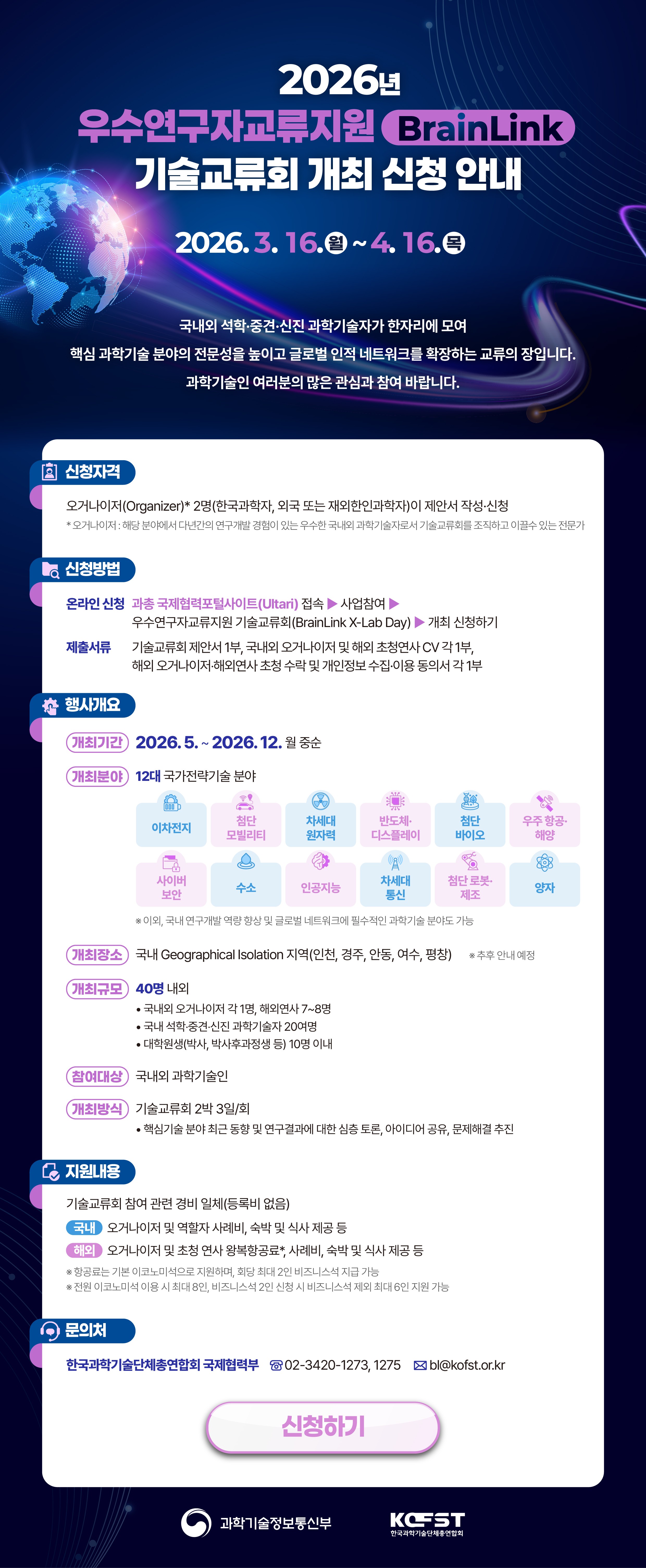 [과총] 2026년도 우수연구자교류지원(BrainLink) 기술교류회 신청 안내(3.16(월)~4.16(목))