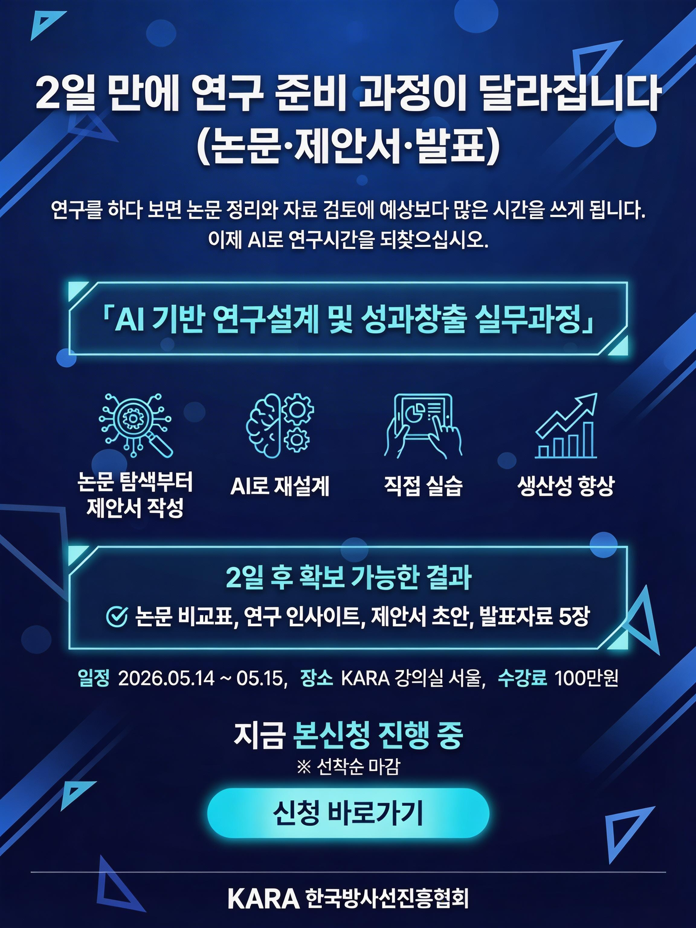 한국방사선진흥협회 인재교육개발실에서는 아래와 같이,'연구자를 위한 AI특강'을 신규개설 하였습니다