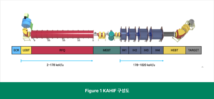 □ KAHIF 개요: KAHIF(한국원자력연구원 중이온조사시설)는 핵융합 및 차세대 원자로 재료 연구를 위해 구축된 RF 기반 선형가속기(linac) 시스템입니다.