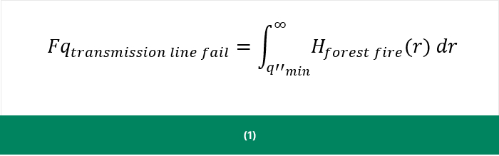 데이터를 통해 종합적으로 평가하였다. 이를 통해 산불로 인해 송전선이 기능을 상실하는 빈도 〖Fq〗_(transmission line fail)은 식 (1)과 같이 제시되었다.