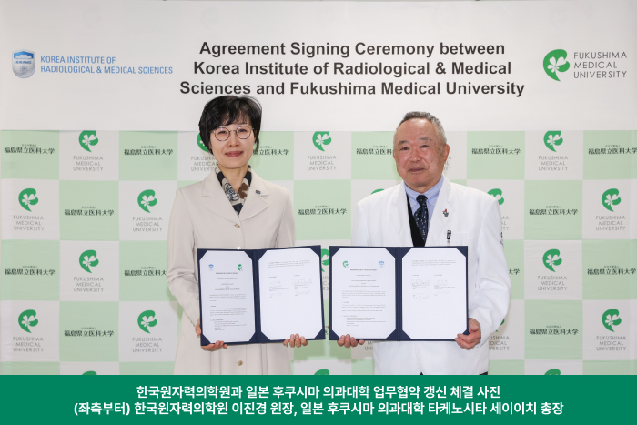 - □ 한국원자력의학원은 2월25일(화) 후쿠시마 의과대학과 난치암 치료용 방사성의약품 개발 및 방사선비상진료 분야의 연구 협력 및 교류 강화를 위한 업무협약을 갱신 체결했습니다.