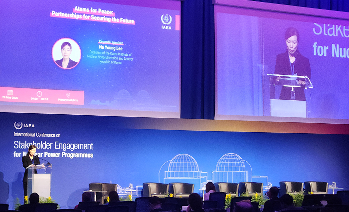 - ▣ 이나영 한국원자력통제기술원(KINAC) 원장은 IAEA의 요청으로 5월 26일부터 30일까지 오스트리아 빈에서 제1회 ‘원자력 프로그램 도입을 위한 이해관계자 협력에 관한 국제 컨퍼런스(International Conference on Stakeholder Engagement for Nuclear Power Programmes)’에서 ‘평화를 위한 원자력: 미래를 위한 협력’ 세션의 기조연설을 맡아, 핵비확산과 핵안보 분야에서의 한국의 경험과 국제적 책임을 전 세계에 공유했습니다.
