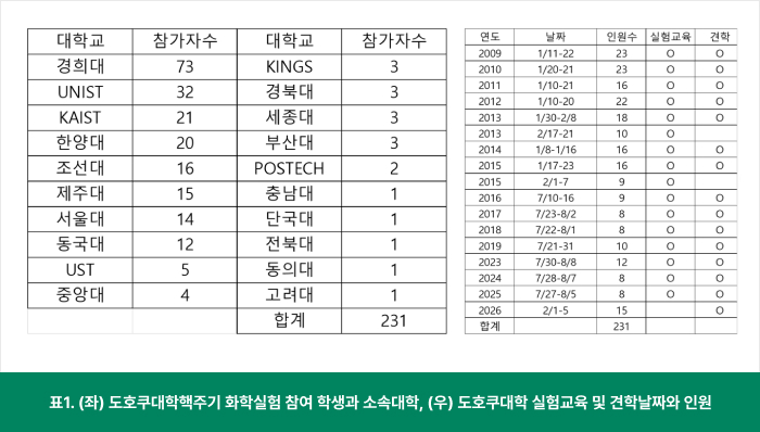 이 실습교육 프로그램과 함께한 17년의 세월은 참으로 빨리 지나간다. 도호쿠대학의 사토 교수와 나 역시 어느덧 정년을 맞아 명예교수가 되었다. 그간 이 프로그램을 거쳐 간 학생은 전국 20개 대학, 총 231명에 이른다. 뜻깊은 세대교체도 자연스럽게 이루어졌다. 현재 한국에서 사전 교육은 이 프로그램의 초기 수혜자였던 UNIST의 박재영 교수가 훌륭하게 이끌고 있다. 하지만 사토 교수는 변함없이 매년 한국의 사전 교육에 직접 참여하여 열정적으로 학생들을 지도해 주고 있어, 그 깊은 애정과 헌신에 늘 감사하고 있다.